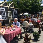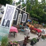 We created a pop-up “cafe” on Canal Street create the vibe that the lively community space (think: seating, art, vendors, music) that is envisioned for the central corridor within the redeveloped Bates Mill 5 connecting the parking garage, Mill 5 tenants, and eventually Lisbon Street. Recognize that sawtooth roof?! Part of Build Maine 2016.