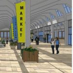 One rendering of a good food/grocery marketplace to be located within Mill 5 — a vision that Grow L+A has heard much community support for.